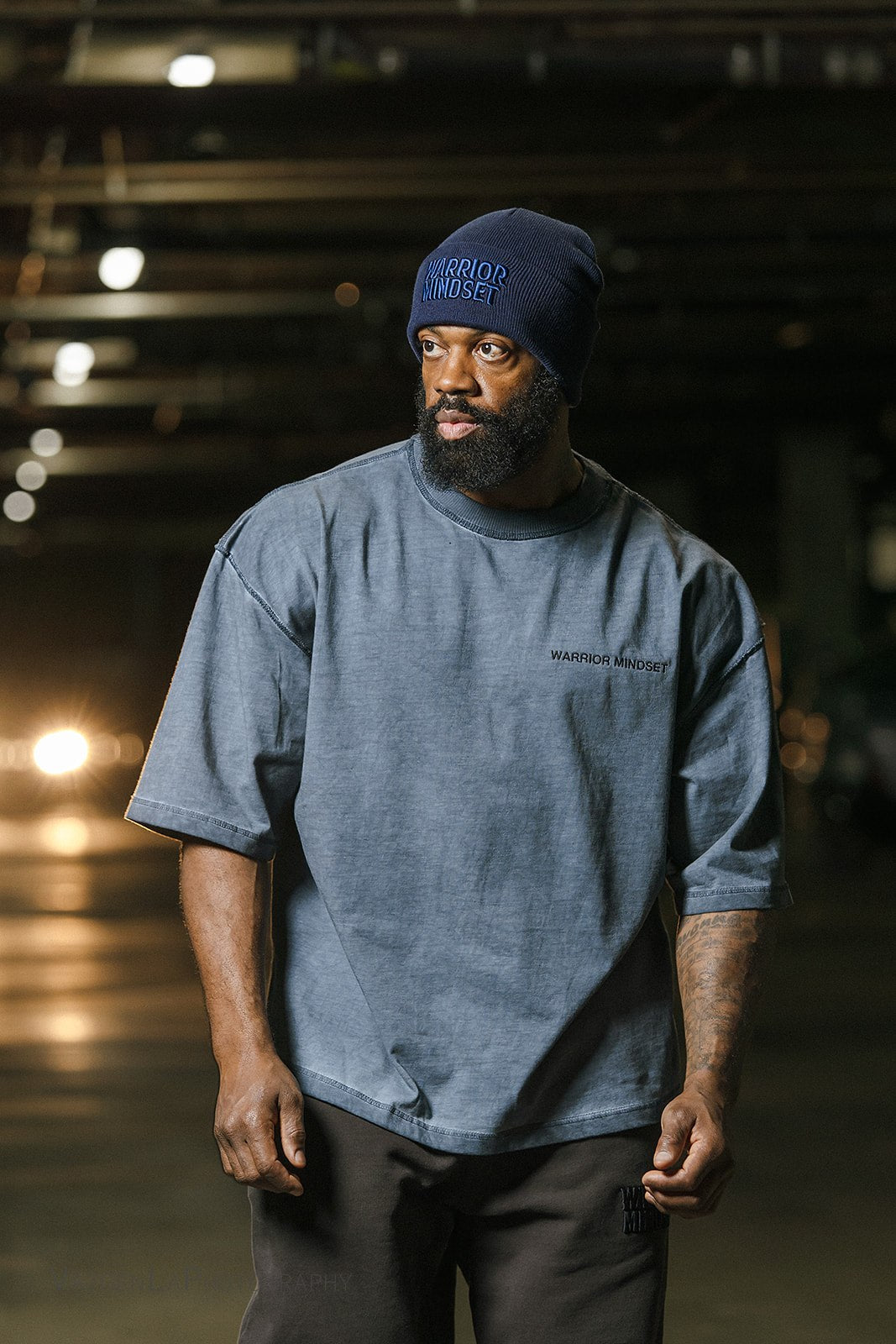 Midnight Blue Beanie — Cobalt Blue Embroidery - Premium